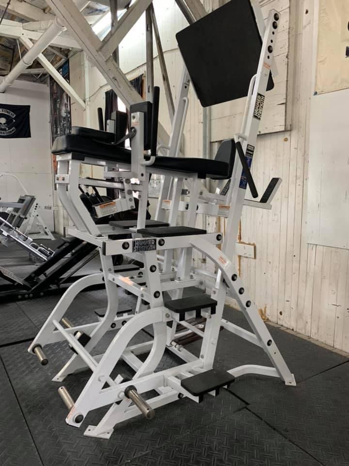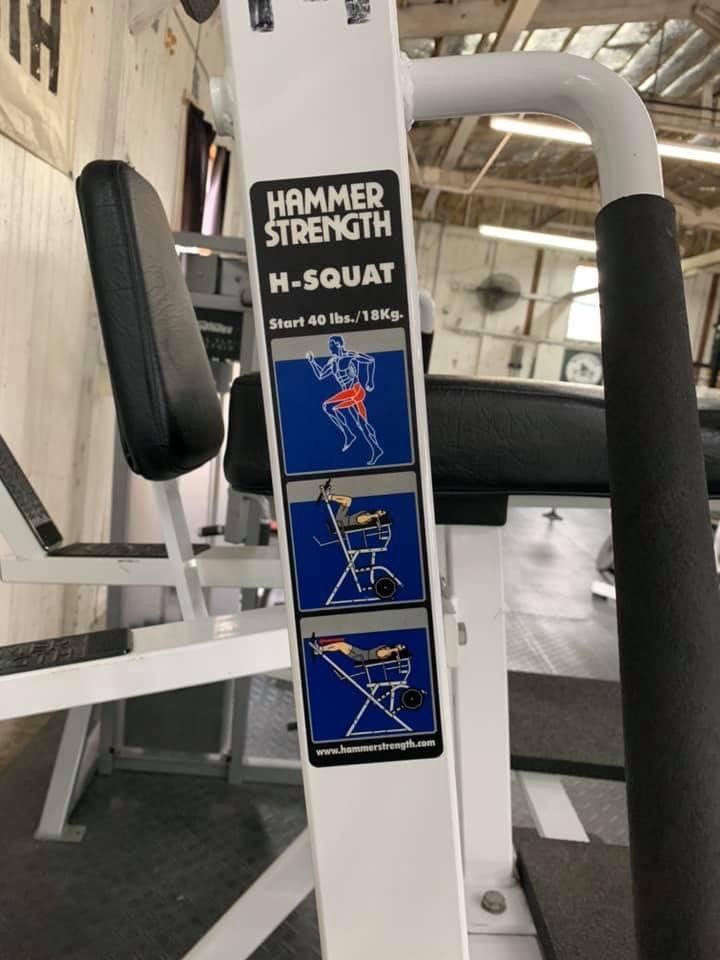 hammer strength H squat The VERY RARE Hammer Strength H-squat. This machine offers complete hip extension, and takes the weight completely off the back. The most rarest machine I have ever looked for. 3 pieces available in stalk