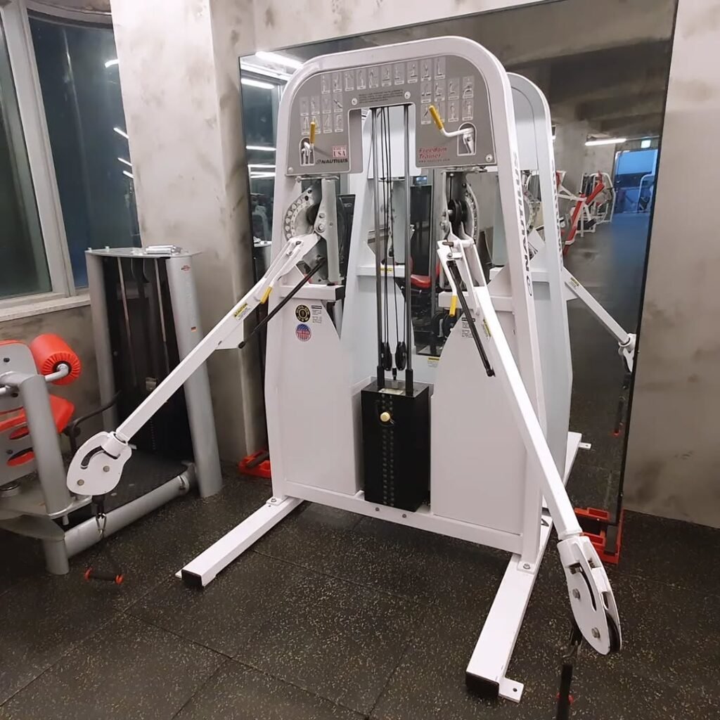 Nautilus Freedom Trainer The Nautilus Freedom Trainer offers versatility and user-defined paths of motion. Unlike other functional training systems in the marketplace, the machine arms adjust in two planes and are counterbalanced for ease of adjustment. The Nautilus Freedom Trainer offers versatility and user-defined paths of motion. Unlike different functional training systems on the marketplace, the machine arms move on two planes. Additionally counterbalanced for ease of adjustment on vertical planes. An infinite number of exercises performed with the Freedom Trainer. It offers versatility and user-defined paths of motion, enabling the user to imitate virtually any activity and reap the full rewards of functional training, improving strength in integrated movements that imitate specific activities, whether sports-related or the movements that make up daily life. Nautilus Freedom Trainer functional training product from Nautilus offers versatility and user-defined paths of motion, enabling the user to imitate virtually any activity and reap the full rewards of functional training, improving strength in integrated movements that imitate specific activities, whether sports-related or the movements that make up daily life.   Features:: Vertical and horizontal adjustments made easy with lever handle Dual-pulley head design allows for better cable tracking in all positions Four-to-one weight ratio for increased cable travel Weight adjustments in 15-lb (6.8 kg) increments Specifications:: Weight :: 600 lbs Dimensions:: 50x 47 ×76.5 in Color:: White Condition ::Pre-Owned Exercise ::Upper Body