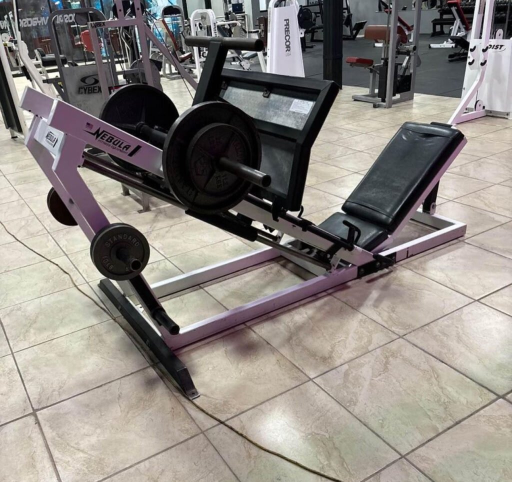 Original Nebula 35-degree linear leg press. This is the holy grail of leg presses. Easily the all-time most popular and most sought-after leg presses ever made. The feel of this unit is like no other. You feel nothing in the knees or hips and solely in the quads and hams and can get the deepest possible stretch of all leg presses. This unit also has a built-in calf block for calf raises. This machine will hold a TON of weight. You can pile on plate after plate. Silly smooth buttery linear bearings. She is a beauty and she’s very RARE. Add her to your collection while you have the opportunity